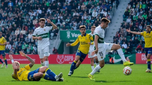 El Elche se tomó en serio la eliminatoria y desde el primer minuto monopolizó la posesión del balón, obligando a Las Palmas a replegarse en su propia área.