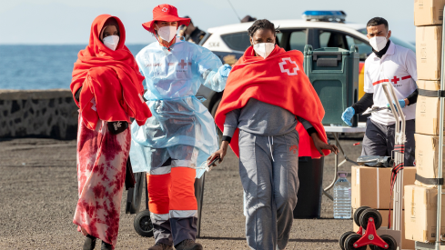 Antes, la misma embarcación de Salvamento Marítimo también confirmó otro eco SIVE registrado a unos 13 kilómetros al sur de Maspalomas (Gran Canaria), donde socorrió a otros 16 varones subsaharianos que navegaban en un tercer cayuco.