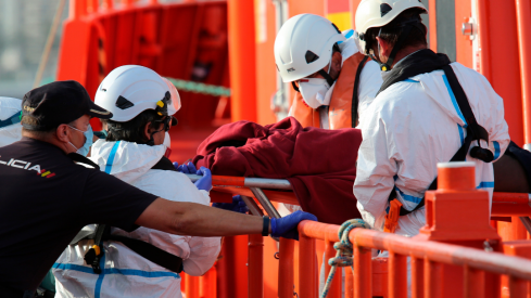 La embarcación de Salvamento Marítimo auxilió a los 45 hombres que iban a bordo y los condujo al muelle grancanario de Arguineguín, donde comenzaron a ser desembarcados a las 02:20 horas de la madrugada.