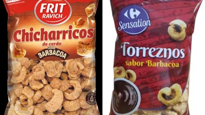‘Chicharricos de cerdo (sabor barbacoa)’ en bolsas de 50 y 800 gramos, de la marca Frit Ravich. Los lotes afectados son el 3001 (envase de 50 g) y el 3101 (envase de 800 g).