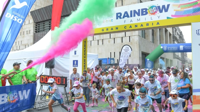 A continuación, era el turno de la Rainbow Family Fun Run, dos kilómetros de recorrido en familia, de nuevo entre los mil colores del arcoíris. Con salida en la plaza Stagno, la marea de colores salía en dirección a Francisco Gourier, Matula, Calle Mayor de Triana, Malteses, Rafael González, Torres y General Bravo, para bajar por San Bernardo y Arena y a la meta, junto al Teatro. Corredores de todas las edades cubrían esta distancia, cada uno a su ritmo, entre las risas y la música que hacen de este evento una cita muy especial en la que la carrera pasa a un segundo plano y la solidaridad y la diversión en familia se convierten en protagonistas.