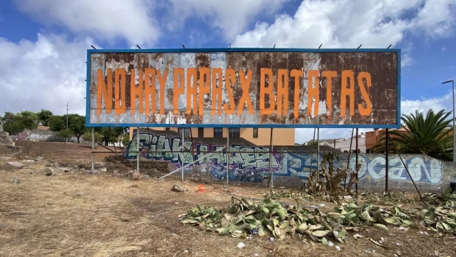 El problema de desabastecimiento de la papa en Canarias no ha quedado ajeno al mundo del arte. El conocido artista canario Sabotaje Al Montaje, Matías Mata, ha querido criticar —con su particular manera de usar el arte como crítica social— el abandono que sufre el sector agrícola en Canarias. En su última obra, una simple pintada "No hay papas x batatas", se puede apreciar con facilidad una idea que pasa por la mente de casi todos los canarios.