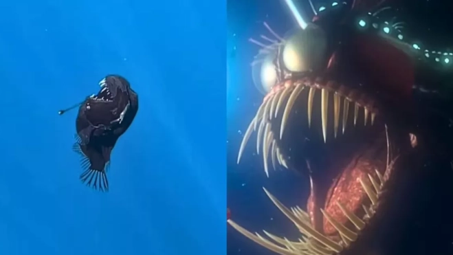 Sin embargo, a diferencia de la imagen proyectada en la animación, en la vida real este pez mide apenas 20 a 30 centímetros, aunque algunas hembras pueden alcanzar los 50 cm. Su intimidante fisonomía es solo una adaptación para sobrevivir en las profundidades.