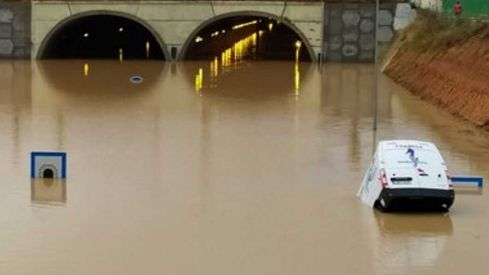 Una de las principales autopistas del país, la AP-7, quedó cortada al inundarse uno de los túneles en Pilar de la Horadada (Alicante), de cuyo interior hubo que recatar a varios conductor con embarcaciones y una moto de agua.