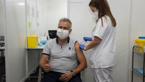 Hoy me ha tocado vacunarme contra la COVID-19. Ha sido Lara, enfermera del Servicio Canario de Salud, quien me la ha inoculado. Gracias. Se han superado en Canarias el millón de dosis inyectadas. La sociedad canaria sigue demostrando su responsabilidad y compromiso. pic.twitter.com/SERIRnj9Ff