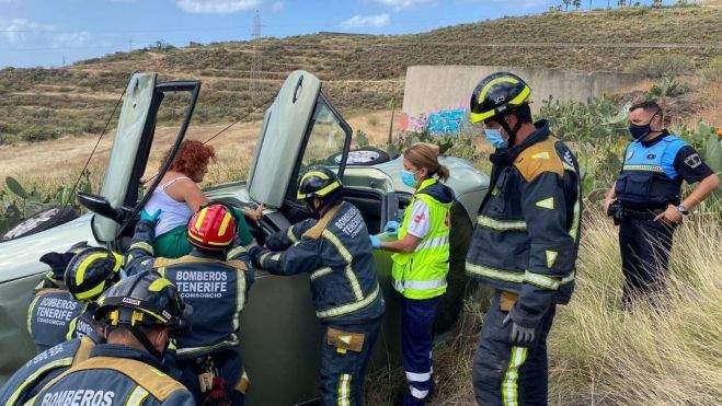 Tres personas han resultado heridas de carácter moderado tras el vuelco de un vehículo en la zona de Barranco Grande, en Santa Cruz de Tenerife, ha informado el Centro Coordinador de Emergencias 112.Efectivos del Consorcio Bomberos de Tenerife aseguraron el vehículo accidentado, que había volcado tras caer a una finca, y liberaron a dos ocupantes del interior del habitáculo.
