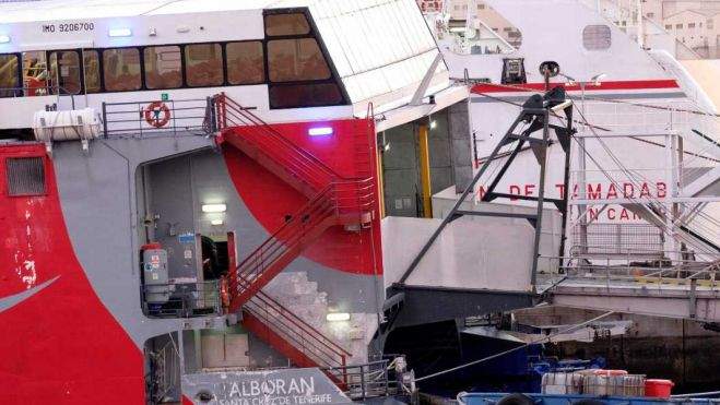 La versión de los tripulantes de este barco de servicios marítimos, que se dirigía a Tenerife cargado con un contenedor de material de buceo, apunta a que fueron arrollados por el "Alborán", el ferry rápido de Armas que cubre la línea Las Palmas-Santa Cruz.