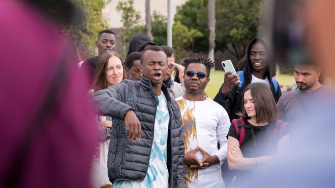 La intervención forma parte de un programa más extenso que contará con la celebración de mesas de diálogo y ponencias durante toda la jornada, en las que participan desde ONGs a estudiantes y profesionales de distintos ámbitos, pero también migrantes procedentes de los centros de acogida situados en la isla de Tenerife.