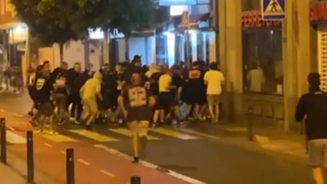 Así, según fuentes del CNP, sobre las 22:40 el grupo de aficionados vallecanos ya empezaron problemas en Guanarteme y, posteriormente, se desplazaron a Plaza de España, donde continuaron con el caos.
