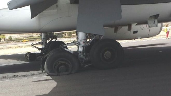#NOTICIAS| Imagen del tren dañado del #A330 de @jet2tweets que mantiene paralizado el aeropuerto de #TenerifeSur.