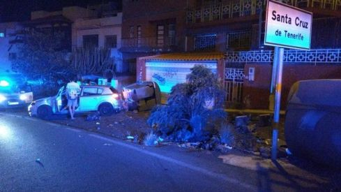En la noche del lunes al martes un conductor, de 23 años de edad, causó numerosos daños materiales al salirse de la vía en la carretera Santa Cruz-La Laguna (TF 180).