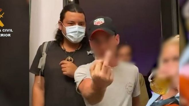 Subraya que ese individuo había salido del local sin hacer uso de la mascarilla obligatoria, realizando gestos obscenos a los agentes de las fuerzas de seguridad actuantes y con una botella de cristal en sus manos.La Comandancia agrega que el detenido mostró resistencia activa, por lo que tuvo que ser reducido entre cuatro efectivos, llegando a provocar lesiones a uno de ellos y daños en el uniforme.Además, en el traslado a dependencias policiales el arrestado profirió golpes con sus piernas al vehículo oficial, llegando a desplazar y descolgar el cristal de una puerta.La Comandancia de Las Palmas añade que las diligencias por estos incidentes ya constan en el Juzgado de Instrucción de Guardia de la capital majorera, Puerto de Rosario.Un detenido en el desalojo de un local de ocio de Corralejo que superaba el aforo via @FTVHoy https://t.co/55orR54FTa