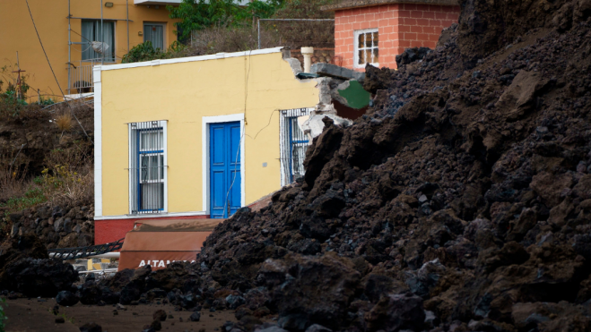 Vivienda derruida dentro de la zona de exclusión del volcán de La Palma. / Archivo Efe