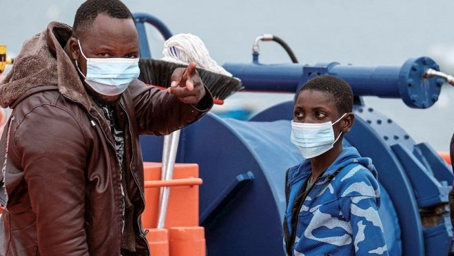 Llegada de embarcación con 56 migrantes al Muelle de La Estaca, Valverde #ELHIERRO. En el grupo venían 15 menores y una mujer y no precisan traslado a un centro sanitario.