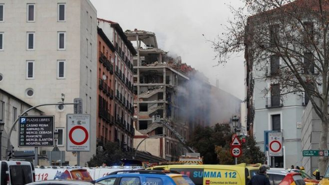 Una explosión de gas se perfila como la causa del derrumbe del edificio en la calle Toledo de Madrid en el que han muerto al menos tres personas, según han informado a Efe fuentes de Emergencias Madrid.La explosión ha afectado al menos a cuatro plantas del edificio del número 98 de esa calle, en el que, según han indicado fuentes del Arzobispado de Madrid, residen sacerdotes.Se trata del centro parroquial de la Iglesia de la Virgen de la Paloma, que queda detrás. Según la web de la parroquia, incluye los despachos, un centro de acogida de Cáritas, ocho salas de reuniones, un salón y tres viviendas para sacerdotes.