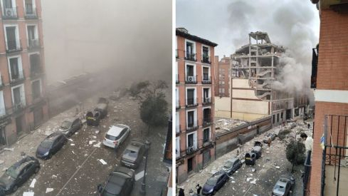 Nueve dotaciones de los Bomberos de Madrid y once unidades del Samur se han desplazado a la calle Toledo tras la deflagración.La explosión ha podido escucharse a kilómetros y los cascotes cubren gran parte de la calle Toledo.@BomberosMad @SAMUR_PC @policiademadrid están en la calle Toledo trabajando tras una #explosión. pic.twitter.com/BuSzasNPJn