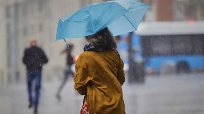 Imagen de una persona en la calle un día ventoso y con lluvia / EP