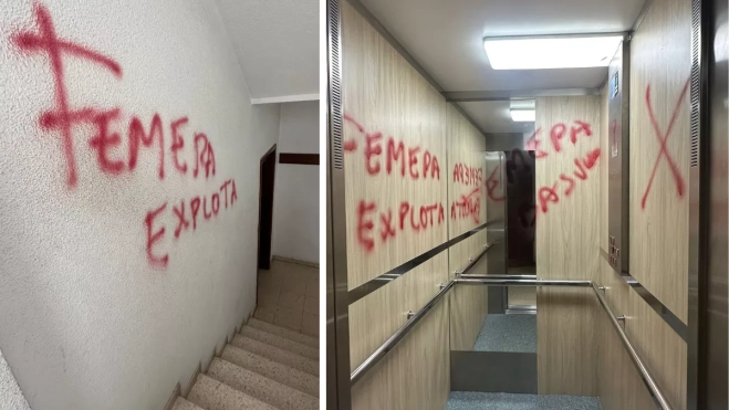 Desde Femepa han informado en sus redes sociales que "durante una concentración sindical legítima, algunas personas accedieron sin autorización al inmueble y realizaron pintadas ofensivas e intimidatorias con nombres propios y símbolos amenazantes".