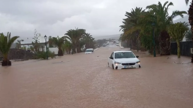 Una intensa tromba de agua registrada en la isla de Lanzarote a primeras horas de la tarde de este sábado ha provocado más de una veintena de incidencias, especialmente en el municipio de Teguise, donde se han producido inundaciones en bajos comerciales y garajes, así como el cierre de varias vías debido a la acumulación de agua.