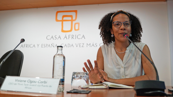 Viviane Ogou ha sido la encargada de hablar este miércoles para los jóvenes del IX CAMP Internacional Rotary Maspalomas, que se ha trasladado a Casa África por un día para continuar con su ciclo de conferencias. Con tan sólo 25 años, la joven, graduada en Relaciones Internacionales y máster en Seguridad Internacional, posee un interesante currículum.