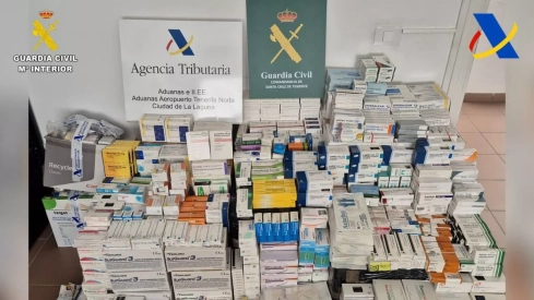 Agentes de la Guardia Civil, adscritos a la Sección Fiscal y Frontera del aeropuerto Tenerife Norte-Ciudad de La Laguna, junto a funcionarios de la Aduana de la Agencia Tributaria, intervinieron un total de 20.477 dosis de diferentes medicamentos en el equipaje facturado de un pasajero de 77 años, vecino de San Cristóbal de La Laguna.