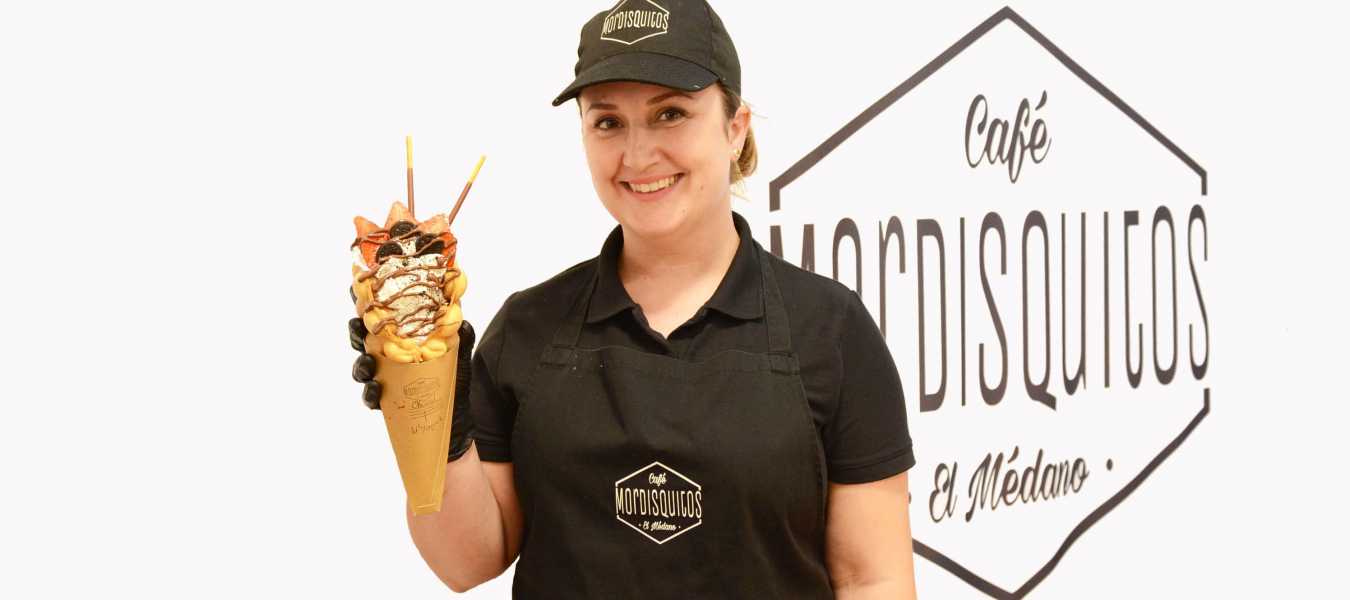 La historia de Mordisquitos Café se remonta unos años atrás cuando Narazet y Sergio se cruzaron con los bublle waffles en uno de sus viajesa Londres: “Nos gustó muchísimo la idea y consideramos montar un local en Tenerife. Y así hicimos… Queríamos empezar por algo pequeño, no haciendo una inversión muy grande y estamos muy contentos con la respuesta que ha tenido”, explicó Nazaret.
