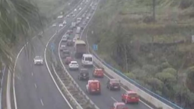 El siniestro se produjo pasando el puente de La Victoria, lo que generó rápidamente colas de vehículos que se extendieron hasta superar el municipio de Santa Úrsula.