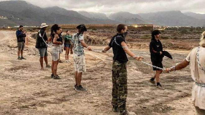 “No estamos contra el trabajo de ustedes. Estamos contra un mercado que nos obliga a vender nuestra tierra. Son las últimas costas vírgenes del municipio de Adeje. Aquí hay especies endémicas protegidas que la empresa, a sabiendas que la está destruyendo, les compromete a ustedes y los ponen contra nosotros. Nosotros no estamos contra ustedes. Estamos contra los macropoyectos que se cargan las islas”, les comunicó a unos trabajadores que escuchaban con atención.