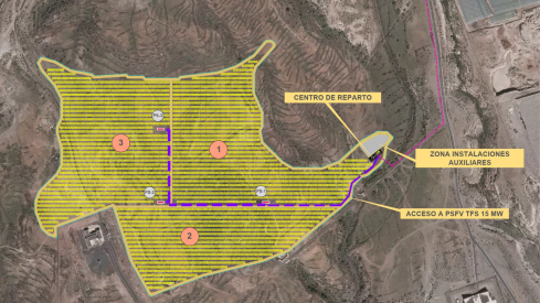 Según el informe del proyecto, la superficie total ocupada será de 17,496 hectáreas, si bien la “superficie neta ocupada por los módulos fotovoltaicos de 8,36 hectáreas”. Constará de tres subcampos que se ubicarán en una parcela perteneciente a las Zonas de Reserva Aeroportuaria que dispone Aena en el Aeropuerto de Tenerife Sur, según el informe.