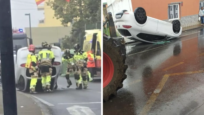 Al lugar del accidente acudieron efectivos del Consorcio de Bomberos de Tenerife, quienes colaboraron en las labores de seguridad y estabilización del vehículo volcado. También se desplazaron agentes de la Policía Local y personal del Servicio de Urgencias Canario (SUC).