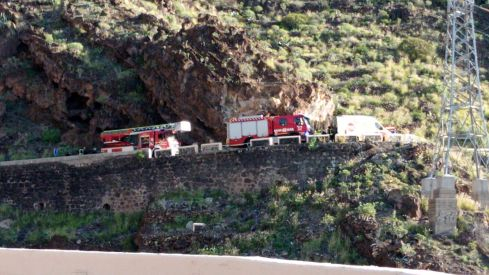 Dos camiones de bomberos, uno de ellos con un brazo articulado, y una ambulancia del Servicio de Urgencias Canario han rescatado la mañana de este sábado a un ciclista que se despeñó por una ladera tras salirse de la vía por la que circulaba entre Igueste de Candelaria y Barranco Hondo.