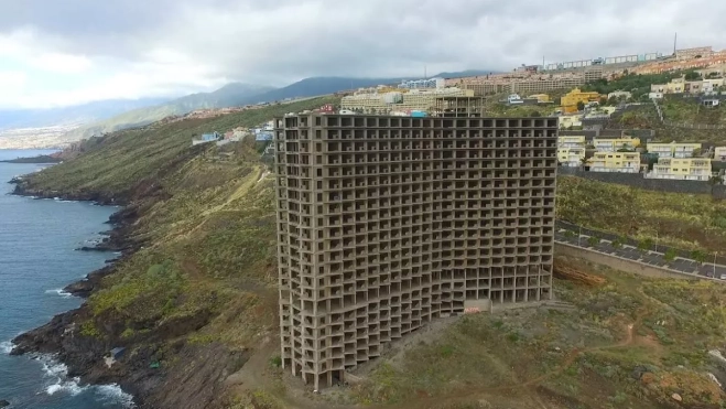 Se trata del edificio más feo del litoral de Canarias por sus grandes dimensiones y creciente estado de deterioro durante cerca de 50 años abandono. Fue proyectado en 1973 como un hotel de lujo con 741 apartamentos distribuidos en 22 plantas, pero las obras se paralizaron en 1975 por irregularidades urbanísticas, problemas financieros y la falta de permisos definitivos.