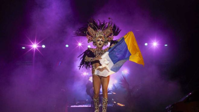 Madrid celebró el Orgullo LGBT (MADO 2018) en un ambiente festivo que comparte con el Carnaval de Las Palmas de Gran Canaria su ideario de libertad, tolerancia y respeto por la diversidad. Y en este ambiente, la fiesta más importante de la capital grancanaria brilló en la noche del viernes, durante la XI Gala Mr. Gay Pride España 2018, con la actuación de sus protagonistas más internacionales, la Reina de 2018, Ana Suárez, y cinco de sus drags, La Tullida -Sergio León, Drag Queen 2018-, Sethlas -Borja Casillas, Drag Queen 2017-, y los tres finalistas de 2018, Vulcano -Isidro Pérez-, Grimassira Maeva -Rayco Santana, Drag Queen en 2014 y 2016- y Noa -Norma Ruiz-. Todos ellos, acompañados por sus cuatro bailarines, fueron los encargados de trasladar los valores que hacen del Carnaval un símbolo de tolerancia y diversidad.