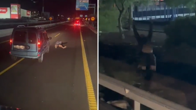 Un hombre en aparente estado de embriaguez o bajo los efectos de las drogas protagonizó la noche del lunes el último vídeo viral de Tenerife. Junto a una furgoneta parada en medio de la autopista sur, el hombre -se desconoce si era propietario del vehículo- se pone a rodar por el suelo haciendo "la croqueta" hasta salir por debajo del quitamiedos.