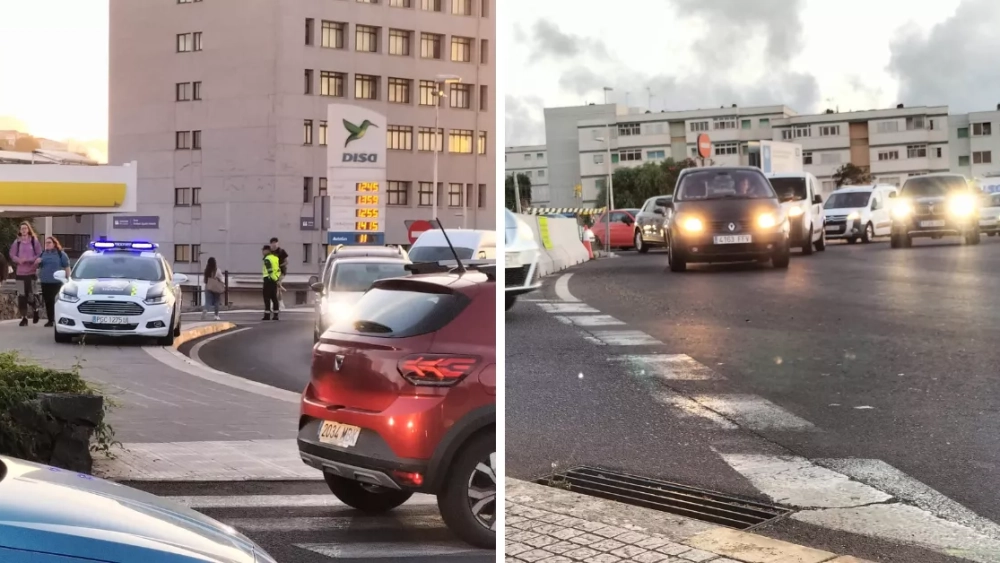 Controlando la rotonda principal, dos agentes de la Guardia Civil absolutamente desbordados. "Se está notando muchísimo que hoy han abierto los colegios y algunas facultades", indica a Atlántico Hoy uno de ellos, añadiendo que el cuerpo necesita "más agentes" para poder dar abasto. Cuando hay algún accidente, señala este agente, tienen que marcharse de la rotonda y dejan de dirigir el tráfico, volviéndose más caótico.