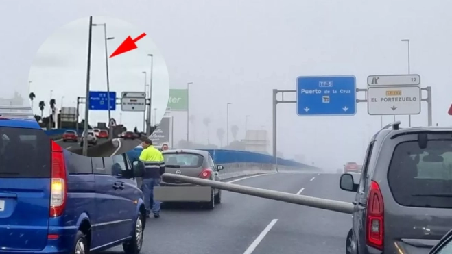 Varios conductores habituales de la autopista TF-5 han asegurado que la farola que cayó este miércoles, en el contexto de la borrasca Therese, ya se encontraba previamente inclinada en comparación con el resto del alumbrado.