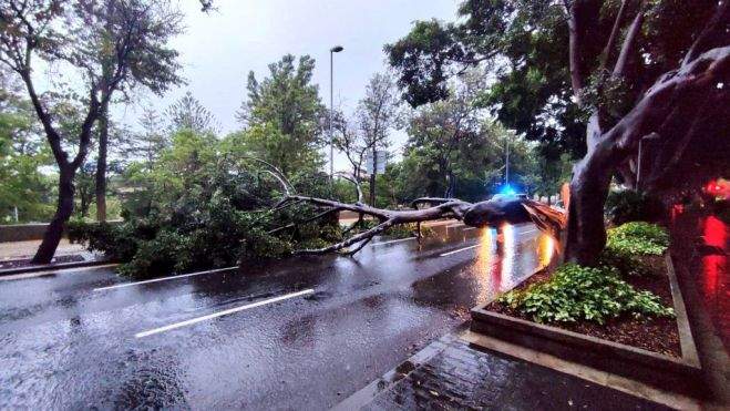 El municipio de Santa Cruz de Tenerife ha registrado más de 60 incidencias. El Centro de Coordinación Operativa Municipal del Ayuntamiento de Santa Cruz de Tenerife (Cecopal) informaba de una serie de sucesos ocurridos durante la noche, entre los que destacan cortes de calles por inundaciones de carriles o caídas de ramas y árboles. La más llamativa ha sido la caída de un árbol de grandes dimensiones en la avenida Benito Pérez Armas. El consistorio ha procedido al cierre de parques.