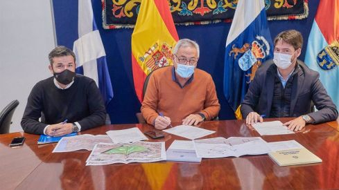 El consejero insular de Cooperación Municipal y Vivienda del Cabildo de Tenerife, Zebenzuí Chinea, y el alcalde de Fasnia, Damián Pérez, han firmado este lunes el acta de replanteo que dará comienzo a las obras de mejora de los depósitos municipales y las redes de abastecimiento para el suministro de agua potable en Fasnia por valor de 1.224.640 euros.