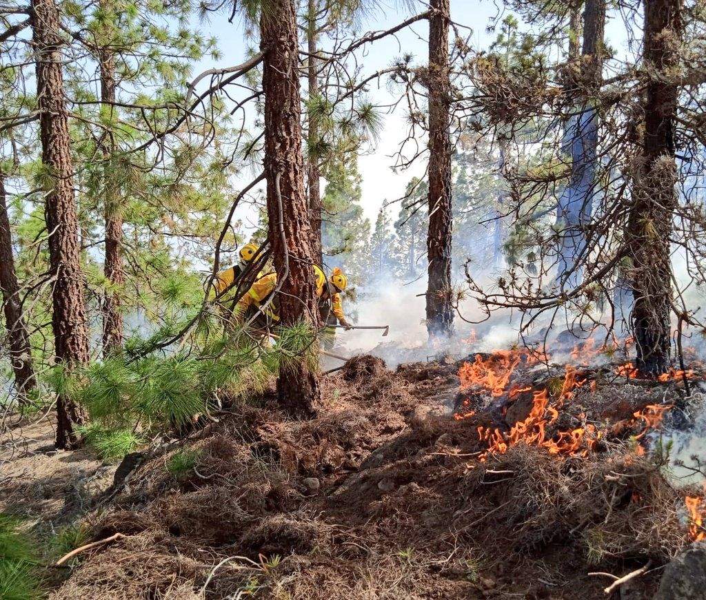 Tras haber alcanzado durante la noche de este sábado las 2.800 hectáreas quemadas, las labores de extinción del fuego, que desde el pasado jueves afecta al municipio de Arico, en Tenerife, no han parado. Las imágenes de aviones y helicópteros recogiendo agua para descargarlas en las zonas afectadas, de camiones recargando y de profesionales que ponen en riesgo sus vidas para que el fuego no avance más llenan las redes sociales con mensajes de apoyo y de fuerza para quienes se enfrentan, en estos momentos, a un fuego y un viento que afectan duramente a la parte sur de la isla.