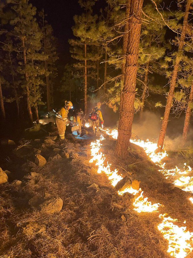 #IFArico|| La noche ha sido complicada y los efectos locales a sotavento unido al viento han complicado las labores de contención, las llamas son altas y existía por la noche mucho humo, especialmente en la Cabeza del Barranco del Río. También complicado en la Casa de la Torta.