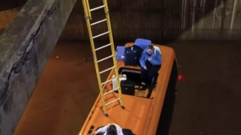 Los bomberos han tendido una escalera desde el puente para que los ocupantes pudiesen salir.