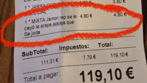 "Se le cayó la arepa jajajaja que se joda". Es el desagradable mensaje que un camarero puso en el ticket de caja de una mesa en una arepera, burlándose de una niña de cinco años, y que se hizo viral el pasado sábado 21 de junio cuando lo compartió la famosa cuenta de X Soy Camarero (@soycamarero).