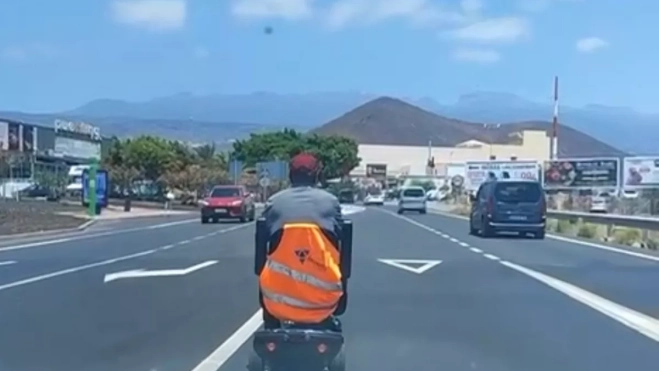 Sorpresa, tensión y una pizca de desconcierto. Eso es lo que se vivió en plena TF-65 a su paso por Las Chafiras (Tenerife) cuando un hombre a bordo de un patinete eléctrico para personas con movilidad reducida —similar a una silla de ruedas— se plantó en mitad de la vía con intención de cruzar hacia una zona comercial.