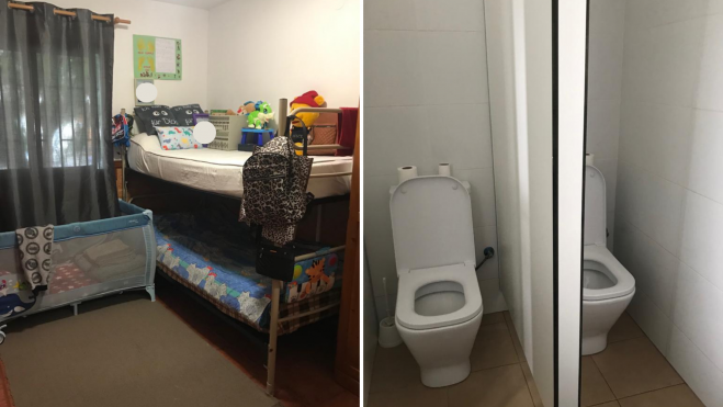 Según los trabajadores, el edificio tiene un aforo para hasta 15 personas y sólo cuatro habitaciones --de 11 metros cuadrados cada una-- y un cuarto de baño. En cada habitación tiene que vivir una mujer con sus hijos y el baño cuenta con una ducha y dos inodoros separados en cabinas.