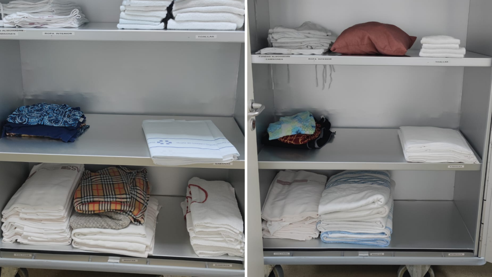 Además de lo anterior, los trabajadores denuncian la carencia de medios materiales para la atención a los usuarios. En los centros, dicen, falta ropa de cama, equipamientos, mobiliario y provisiones. Un empleado del Hospital Febles Campos hace llegar a Atlántico Hoy unas imágenes de los materiales de los que disponían esta semana para hacer las camas. Para 25 pacientes, el carrito de una de las alas de la segunda planta tiene sólo cuatro juegos de sábanas, cinco mantas y seis colchas que deberían durar para todo el turno de tarde, la noche y el inicio de la mañana siguiente.