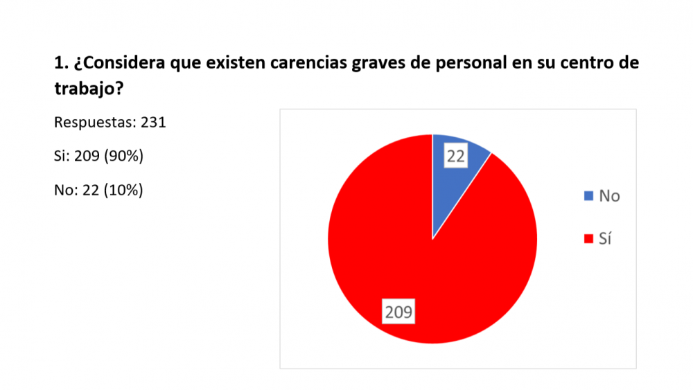 Según un cuestionario interno dirigido a los empleados del IASS desde el comité de empresa y en el que han participado 231 trabajadores de todos los sectores del organismo, el 90% considera que existen "carencias graves de personal" en su centro de trabajo. Casi el 80% creen que hay carencias en equipamiento, mobiliario y enseres.