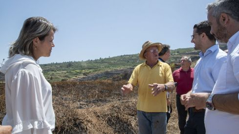La consejera de Agricultura, Ganadería y Pesca del Gobierno de Canarias, Alicia Vanoostende, acompañada por el director insular del Cabildo, Cayetano Silva, y los alcaldes de San Juan de la Rambla y Los Realejos, Ezequiel Domínguez y Darío Pérez (alcalde accidental), respectivamente, visitó hoy las zonas agrarias afectadas por el incendio acaecido el pasado mes de julio en ambos municipios.