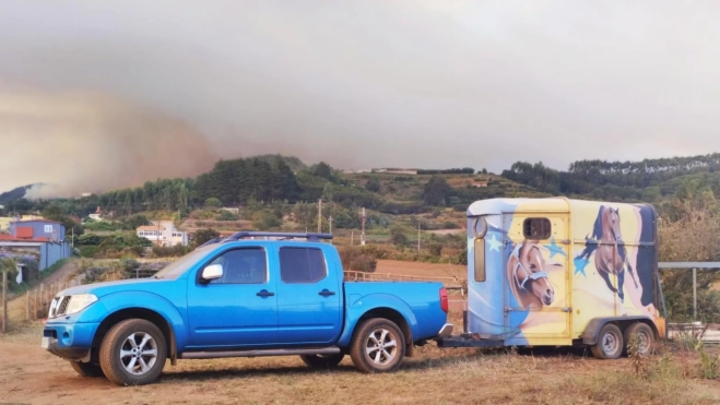 Los Caireles es uno de los centros que están prestando su ayuda desinteresada a los ganaderos de la zona. "Nos ha llamado muchísima gente", cuenta Gara, la hija de Kiko, a Atlántico Hoy. Ella y su padre tienen un remolque que arrastran con su Nissan Navara, una potente pick up todoterreno. El convoy les ha permitido trasladar decenas de caballos, vacas, cabras y demás cabezas de ganado en estos dos días.