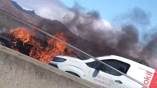 Por el momento no se han comunicado heridos, y los equipos de bomberos y Guardia Civil de Tráfico trabajan en el punto para sofocar las llamas y restablecer la normalidad cuanto antes.