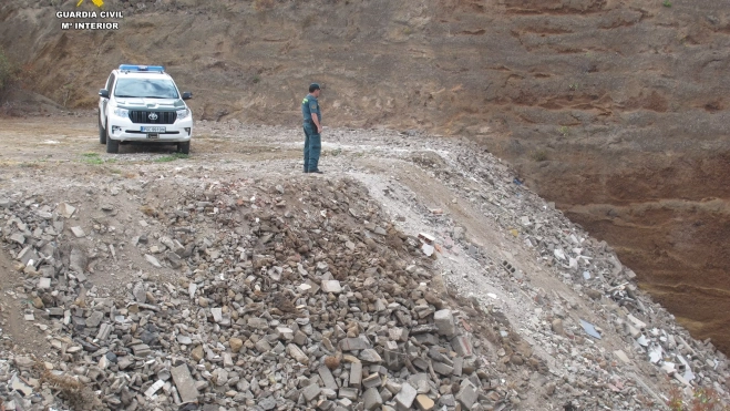 La actuación se produjo tras recibir información de la colaboración ciudadana sobre vertidos en una zona apartada y de difícil acceso. Tras las pesquisas, los agentes constataron que en una cantera abandonada se estaban depositando residuos procedentes de construcción y demolición, junto a plásticos y metales, de manera reiterada.